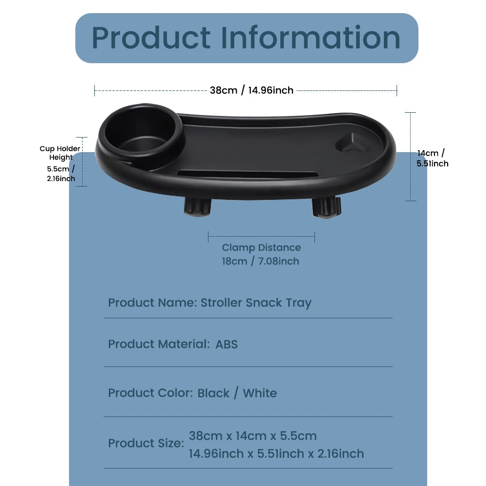 Plateau Goûter 3-en-1 pour Poussette – Porte Gobelet et Support Téléphone